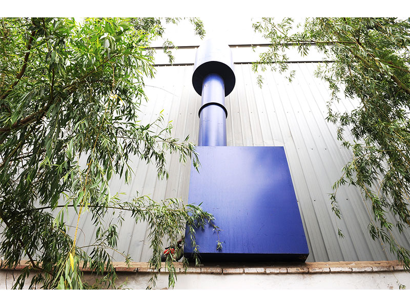 遍布車間,貫通南北的藍色通風(fēng)管道