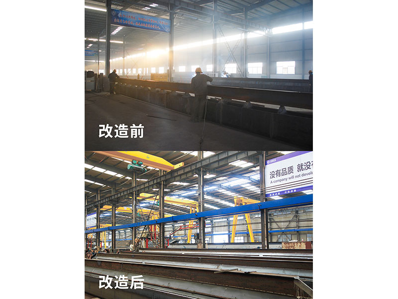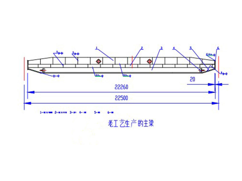 電動單梁起重機主梁原來主要采用U型槽加筋板焊接工字鋼,然后焊接兩側(cè)板再聯(lián)接端梁的方式制作。該工藝缺點是U型槽生產(chǎn)效率低、勞動強度大、焊接費用高、焊接工序耗時較長,焊接變形量大,焊接過程產(chǎn)生較多電焊煙塵,污染嚴(yán)重,在進行多段拼板、焊接、整形的過程中,焊接質(zhì)量難保證,時有主梁橫向焊縫產(chǎn)生裂紋缺痕。