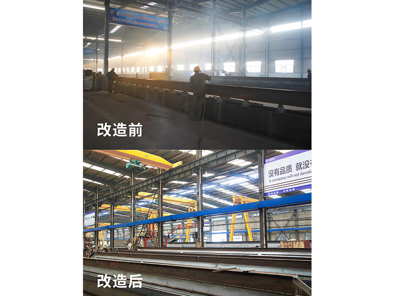2013年,公司與北京起重運輸機械設(shè)計研究院合作,聘請德國起重機專家,根據(jù)人體工程學(xué)及工件流程,完成了“單梁起重機柔性化生產(chǎn)線項目”。